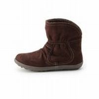 【カラー】ブラック(019)/キャメル(041)/ダークブラウン(043) 【サイズ】35(23.5cm)/45(24.5cm) 【実寸(cm)】35(23.5cm):対応サイズ:23.5cmヒール高:2cm幅:9.5cmブーツ筒周り30cmブーツ総丈18cm/45(24.5cm):対応サイズ:24.5cmヒール高:2cm幅:10cmブーツ筒周り33cmブーツ総丈18cm 【備考】重量:45(24.5cm):片足約245g 【素材】甲材:ポリエステル 底材:合成底 【原産国】中国製 【メーカー品番】20180225715402 【コメント】ギャザーとステッチをあしらってシルエットに変化をつけたムートンブーツ。ほっこりとした雰囲気はそのままでさり気なく女の子らしさを取り入れた新鮮デザインです。ゴムのソールで安定感があり歩きやすいのも特徴です。トップを折り返したアレンジも可愛い◎