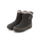 【カラー】GRY 【サイズ】23.0/24.0/25.0 【実寸(cm)】23.0:ソール:2.1cmヒール:2.6cm全長:17.5cmはき口周り:25cm重さ(片足):260g/24.0:ソール:2.1cmヒール:2.6cm全長:17.5cmはき口周り:25.5cm重さ(片足):260g/25.0:ソール:2.1cmヒール:2.6cm全長:17.5cmはき口周り:26cm重さ(片足):260g 【素材】甲材:合成繊維/底材:合成底、ゴム底 【原産国】ミャンマー 【メーカー品番】QFM-6409GR 【コメント】温かみのある素材感で、優しい雰囲気を醸し出すブーツ。履き口のボアや、サイドのベルトが目を引く良いアクセントに。幾何学模様の凹凸を付けた、スニーカー風のアウトソールデザインもポイントです。