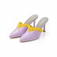 【カラー】RED/PURPLE/BLACK 【サイズ】1(22-22.5cm)/2(23-23.5cm)/3(24-24.5cm) 【実寸(cm)】1(22-22.5cm):ヒール:8.0cm甲幅:7.8cm重さ(片足):約190g/2(23-23.5cm):ヒール:8.2cm甲幅:8.0cm重さ(片足):約190g/3(24-24.5cm):ヒール:8.4cm甲幅:8.2cm重さ(片足):約190g 【素材】本体:合成皮革/底:合成ゴム 【原産国】中国 【メーカー品番】C18FW-S402 【コメント】ひらひらとしたフリルモチーフが、大人スウィートなアクセントになったミュール。シャープなポインテッドトゥ&ピンヒールで、オンナらしい華奢さを演出しました。大胆な配色も、モダンでお気に入り。