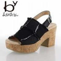 byあしながおじさん 靴 8750239 BL サンダル 厚底 ウエッジソール バックストラップ ブラック ゴールド 女性 レディース セール