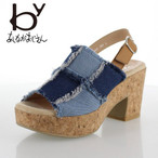 byあしながおじさん 靴 BU C サンダル 厚底 太ヒール チャンキーヒール パッチワーク風 バックストラップ ブルー 女性 レディース セール SAYA サヤ ラボキゴシ 本革 ぺたんこ フラットサンダル ローヒール