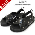 40%オフ セール Amb エーエムビー サンダル レディース 春夏 レザー スタッズ クロスベルト x stone Ambassadors by verginia kanna カンナ ジュート フラット フェザー ビーズ