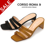 40%オフ セール CORSO ROMA 9 コルソローマ サンダル ヒール サテン 本革 マウロデバーリ MAURO de BARI フラット ハトメ スタッズ ぺたんこ